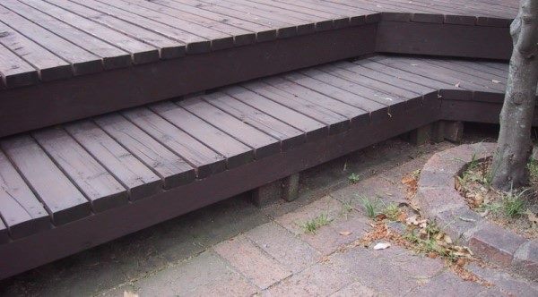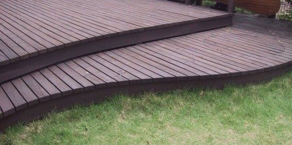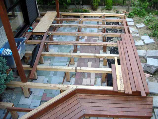 明るいところでじっくり見ると、コーススレッドやデッキ材の継ぎ目も揃っていないし、ほんと